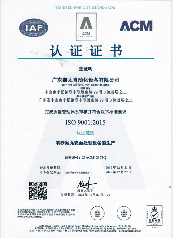 ISO9001认证证书
